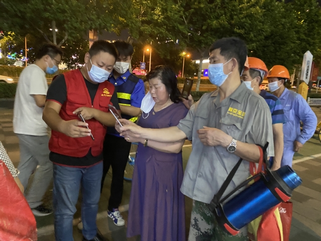 會(huì)后,集團(tuán)迅速組織黨員干部組成志愿者隊(duì)伍,聯(lián)系建鄴區(qū)認(rèn)領(lǐng)疫情防控志愿工作,趕赴多個(gè)社區(qū)協(xié)助防疫一線的核酸檢測(cè)工作。集團(tuán)志愿者隊(duì)伍每組都由集團(tuán)部室、公司負(fù)責(zé)人帶隊(duì),進(jìn)入工作現(xiàn)場(chǎng)后,他們迅速熟悉掌握工作要求,立即上崗?fù)度胫驹阜?wù)。引導(dǎo)前來進(jìn)行檢測(cè)的市民嚴(yán)守疫情防控要求有序排隊(duì)進(jìn)場(chǎng),安撫待檢人員相互配合支持,指導(dǎo)幫助登記掃碼加快工作速度,為老人和困難市民提供方便服務(wù)……在他們與其他志愿者的共同努力下,這幾個(gè)檢測(cè)點(diǎn)都秩序井然,有效推進(jìn)了檢測(cè)速度,減少了市民等待時(shí)間。志愿者們把保障核酸檢測(cè)有序高效推進(jìn)作為此時(shí)踐行初心使命的擔(dān)當(dāng),忘記了炎熱夏夜忙碌的一身汗水,忘記了蚊蟲繞身不停的叮咬,為筑起群眾生命健康防線獻(xiàn)出了一份力量。