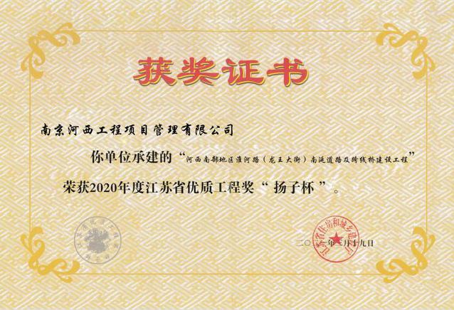 近日,江蘇省2020年度優(yōu)質(zhì)工程獎“揚子杯”獲獎項目名單公布,河西集團新城公司所屬南京河西工程項目管理有限公司代建的河西南部地區(qū)淮河路(龍王大街)南延道路及跨線橋建設(shè)工程榜上有名。