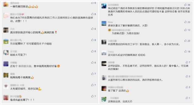 圖▲國(guó)青酒店在互聯(lián)網(wǎng)社交平臺(tái)收到的各種稱贊