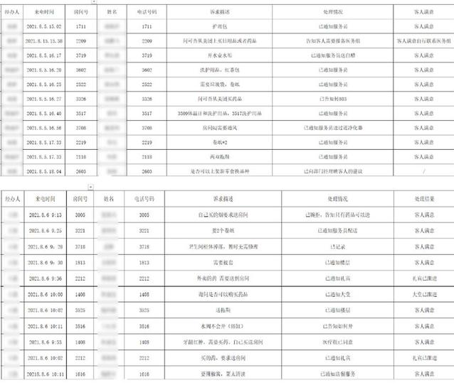 “3323房間需要辣椒醬或老干媽”、“2420房間需要免洗洗手液”、“3903房間住客喉嚨不舒服需要藥”……客服中心每天都會(huì)接到各種特殊的需求并一一做好記錄,及時(shí)聯(lián)系相關(guān)同事協(xié)助采買(mǎi)、送達(dá)。