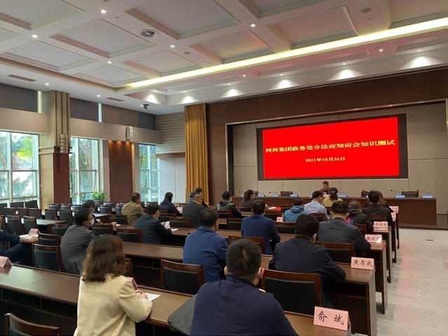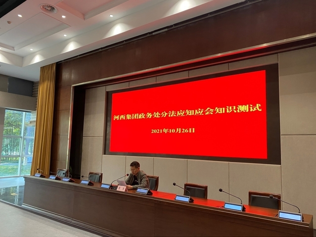 2021年10月26日下午,河西集團(tuán)監(jiān)察專員辦公室開展警示教育活動,組織集團(tuán)本部處級干部及下屬子企業(yè)領(lǐng)導(dǎo)班子成員進(jìn)行《中華人民共和國公職人員政務(wù)處分法》應(yīng)知應(yīng)會知識測試。本次測試應(yīng)到36人,實(shí)到34人,2人遞交了書面請假材料,測試均分96分,學(xué)習(xí)宣貫效果良好。