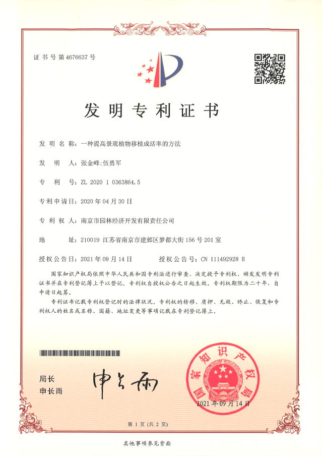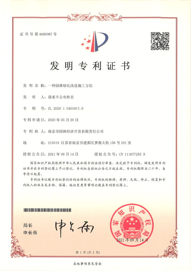 近日,河西集團(tuán)南京市園林經(jīng)濟(jì)開發(fā)有限責(zé)任公司喜獲兩項(xiàng)國家發(fā)明專利授權(quán)。