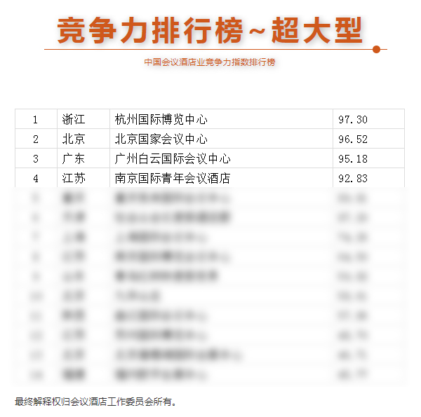 本屆榜單按照酒店的規(guī)模體量分為超大型、大型、中型、小型四個類別,從上一年度承接會議數(shù)量和規(guī)模、會議室容量和數(shù)量、客房總數(shù)、渠道客評、經(jīng)營數(shù)據(jù)等多方面進行綜合評價,經(jīng)數(shù)據(jù)調(diào)研、專家評審等多個環(huán)節(jié)細致評估,得到了相對客觀準確的評選結果。國青酒店憑借自身場地優(yōu)勢、對會議客戶市場的探索及挖掘、專業(yè)的會議接待服務,贏得了專家評委及企業(yè)買家的認可,在榜單中以總分92.83的好成績位列全國第四。