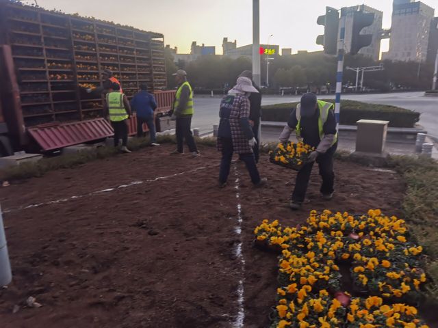 冬季的清晨,寒意逼人,園林工匠們卻干的熱火朝天。清理秋季草花、施肥整地,根據(jù)更換方案,對草花花色進(jìn)行合理搭配,以求達(dá)到花色鮮艷、品種豐富的景觀效果。在植物配置時(shí),進(jìn)行了圖案設(shè)計(jì),如河西大街長方形套圖、樂山路、奧體大街花境設(shè)計(jì)布置等,構(gòu)成了一幅幅靈動活潑的圖畫,不僅美化了城市景觀效果,也為冬季出行的市民呈現(xiàn)了一道靚麗的風(fēng)景線。