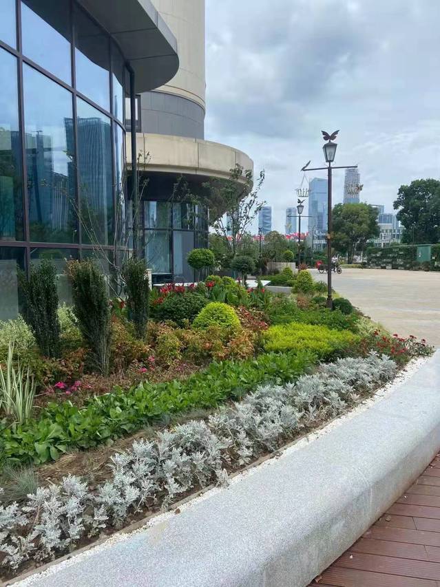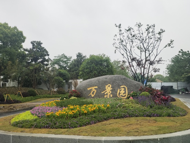 萬景園北入口項目將原始花壇改造成弧形整石花壇,常夏石竹、八仙花、女貞球等彩葉花灌木鋪滿在景觀石的四周,形成植物品種豐富、層次分明的小型花境。入口處增設(shè)標(biāo)有“萬景園”字樣高達(dá)12米的立牌,高大醒目,與魚嘴公園、青年文化公園、綠博園形成了統(tǒng)一的濱江風(fēng)光帶入口標(biāo)識。