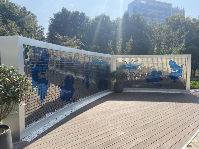 該項目位于南京青奧村,施工面積3000平方米,項目以書和自然(昆蟲)為設(shè)計理念建成了一個全方位體驗的多感官廣場:在視覺上,活字印刷墻隨光影的變化能夠顯現(xiàn)出千字文的內(nèi)容;在聽覺上,風(fēng)動墻和昆蟲互動裝置鋁會發(fā)出特有的聲音;在嗅覺上,垂直綠化墻體上的綠植在開花時散發(fā)出陣陣花香;在觸覺上,文字互動裝置撥動雙色滾珠時,可組成不同文字或圖案。