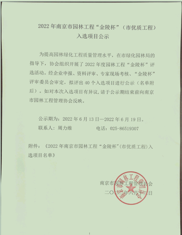 近日,由河西集團(tuán)新城公司溧水項(xiàng)目部代建的溧水區(qū)秦淮大道改造景觀提升工程順利通過(guò)南京市園林工程管理協(xié)會(huì)組織的”金陵“”評(píng)審,成功入選2022年南京市園林工程“金陵杯”(市優(yōu)質(zhì)工程)項(xiàng)目名單。