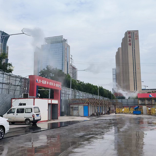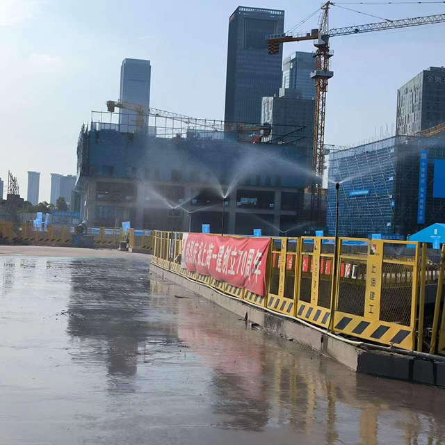 該項(xiàng)目A、B、C區(qū)目前處于底板施工階段,針對(duì)揚(yáng)塵管控,新城公司項(xiàng)目管理團(tuán)隊(duì)嚴(yán)格按照“十達(dá)標(biāo)”管理標(biāo)準(zhǔn)進(jìn)行施工,在出入口規(guī)范設(shè)置沖洗平臺(tái),并配合高壓水槍等設(shè)備對(duì)進(jìn)出車輛進(jìn)行全方位沖洗,杜絕了車輛帶泥上路。施工現(xiàn)場(chǎng)配備霧炮機(jī)、高桿噴淋進(jìn)行360°旋轉(zhuǎn)降塵。同時(shí),項(xiàng)目安排專人對(duì)施工道路進(jìn)行清掃,灑水車不間斷灑水使道路保持濕潤(rùn),進(jìn)一步提升工地抑塵效果。